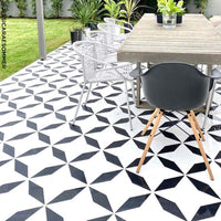 Our Diamant Tile stencil is inspired by a classic geometric encaustic cement tile design, which is both classy and timeless. This cement tile stencil is perfect for creating a gorgeous painted tile floor, kitchen tile backsplash, accent wall or even a faux tile table top! With our tile stencils, you can create a dramatic tile floor on a budget and save big on bath and kitchen renovations! No need to rip out your old tile, as you can stencil right over it. Just imagine the savings!